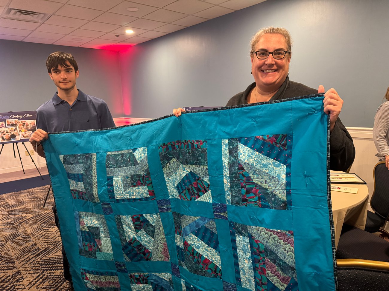 Cape Cod Tech graduate Maxwell McGrady, recipient of the Corporal Nicholas G. Xiarhos, USMC Memorial Scholarship, with his Bayberry Quilters quilt. |