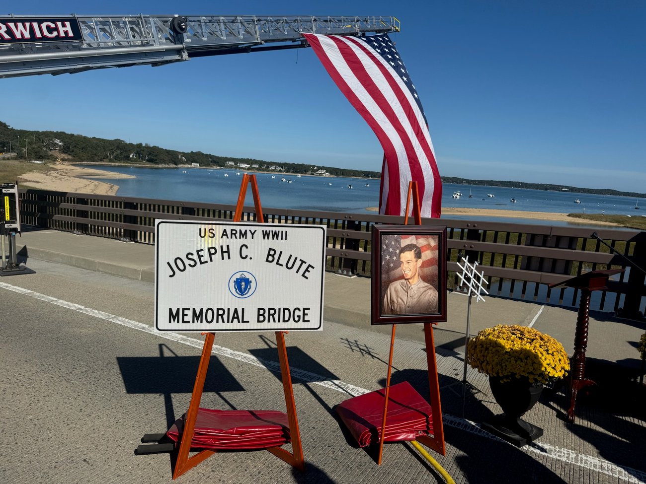 The bridge spanning Muddy Creek was named after former Harwich resident and World War II Private Joseph Conrad Blute. Thanks to Rob Mador of Bridges for the Fallen, my predecessor Sarah Peake, and Senate counterpart Julian Cyr, and the Blute family (many of whom still reside in Harwich), Private Blute’s sacrifice for our country will never be forgotten.